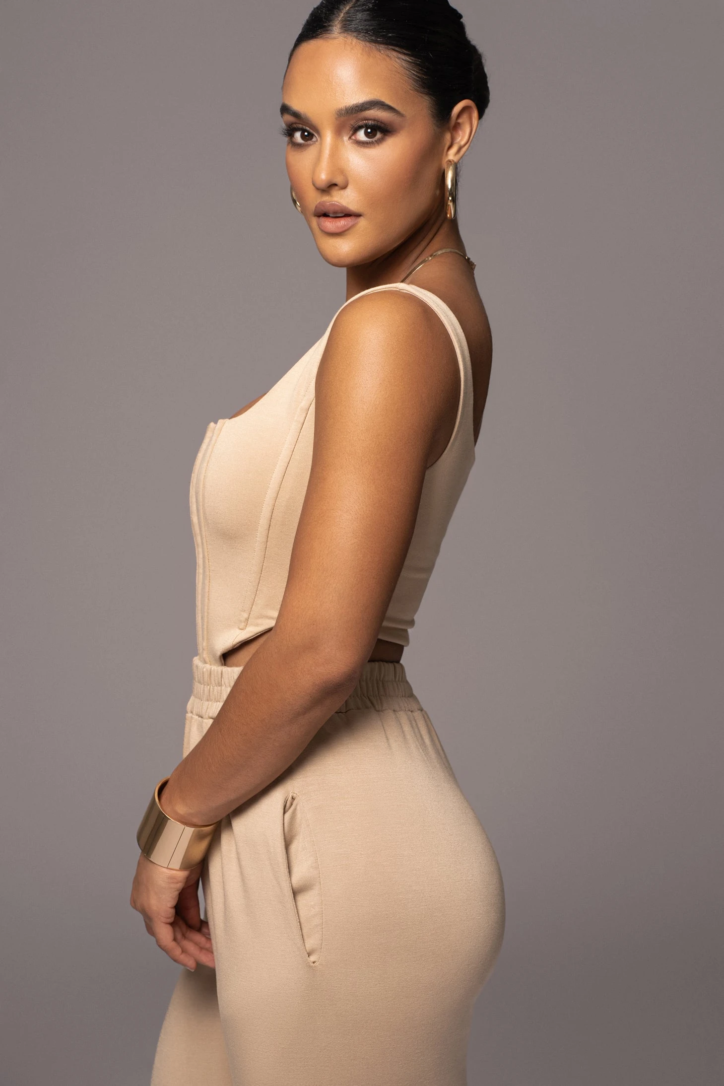 Sultry and versatile in our Beige More Than Friends Corset! Designed of brushed fleece, this stunning corset style top features a hook and eye design with tank shoulder straps and a squared neckline. Boning throughout the bodice adds structure for a secure fit. Pair with our