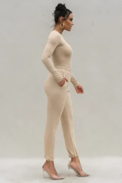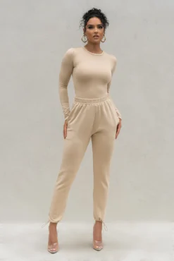 There’s no telling how far you’ll go in our Beige No Limits Joggers. These modern sweatpants are constructed of a soft fleece fabric and highlight a ruched waistband with two functional side pockets, straight leg hems, and drawstring ankles for an optional jogger style look! Pair with our