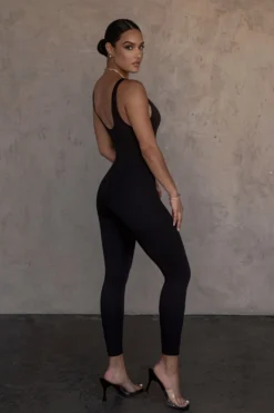 EXCLUSIVELY DESIGNED BY US FOR YOU. All eyes are on you when out in the BLACK ALO DOUBLE LAYER JUMPSUIT! This versatile, sleeveless jumpsuit features a body forming silhouette with a low scoop neck, tank shoulders, and skinny leg hems. Designed in smooth double lined jersey fabric for compression support. Style it as a layer or by itself, either way, your look will be irresistible! Stretchy.