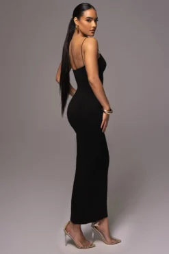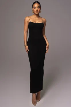 The perfect after party look starts with our Black Jacey Cami Maxi Dress! This curve-hugging maxi dress features a low scoop neckline with stylish bungee shoulder straps. Designed in double lined jersey fabric for a smooth and sleek finish. Stretchy.