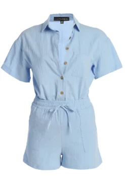 Greet hot summer days in style with our Blue Halle Two Piece Short Set! The resort-ready short set features a collar neck top with short sleeves and a button-front closure. The matching shorts feature a relaxed fit with drawstring waistband. Stretchy. Sold as set.