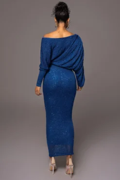 Shine like the stars in our gorgeous Blue Night Sky Sequin Skirt Set! This elegant skirt set features a long sleeve top with an off the shoulder neckline, banded cuffs, and hems. The matching skirt comes in a fitted silhouette with elastic waistband and maxi length hem. Crafted from a high shine sequin fabric, this luxurious skirt set takes you from day to night with ease. Sold as set. Doubled lined with stretch.