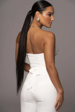 There’s always something to celebrate when in the Ivory New Heights Top. Crafted in our new luxurious slinky fabric, this one of a kind top features a sweetheart neckline with a stylish crossover design and alluring cutouts. Tie-back closure. Double-lined with stretch.
