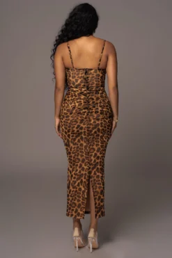 Make an entrance that won’t be forgotten in our Leopard Make An Entrance Cowl Neck Dress. Crafted in a desirable sheer fabric, this leopard print dress highlights a stylish cowl neck with adjustable shoulder strap and maxi length hem. Complete with a back slit hem and a back zipper for closure. Some stretch.Â
