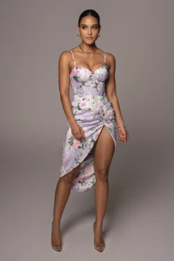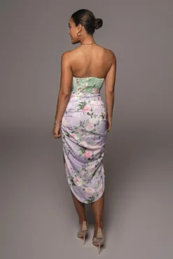 EXCLUSIVELY DESIGNED FOR YOU BY US. A captivating floral design in pastels shapes into a smooth satin asymmetrical skirt. Our EMIELLE SATIN SKIRT features a flattering front drape detail with a flirty high slit to show off a little extra skin! High waisted. Double lined. Pair with our