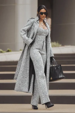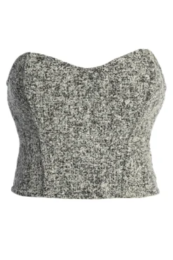 Femme with a touch of sophistication in our Lt. Grey All You Need Tweed Corset. This strapless corset features a sweetheart neckline with padded underwired cups, boning throughout for structure support, and grip silicone at the bust for the secure hold. hook and eye closures. Fastened with hook and eye closures. Pair with our