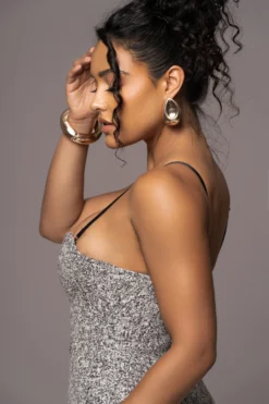 Go for upscale style this Fall in our Lt. Grey Royal Tweed Midi Dress! Created from premium tweed, this timeless dress showcases a bustier style designed in a fitted silhouette to flatter every curve. Complete a back zipper closure and detachable shoulder straps that offer a versatile transformation, allowing you to switch between strapless and strapped style effortlessly. Lined interior. Back slit hem.