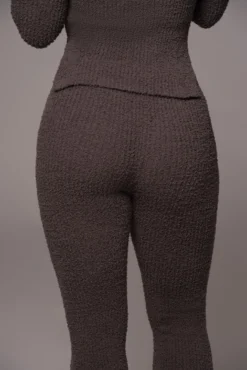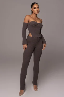 Sleek yet so comfy in our Midnight Grey Off The Record Plush Set. This ultra-soft pant set is crafted in a ribbed plush fabrication and features an off-shoulder top with long sleeves and split side hems. The matching pants are topped with an elastic waistband and fitted hems. Stretchy. Sold as set.