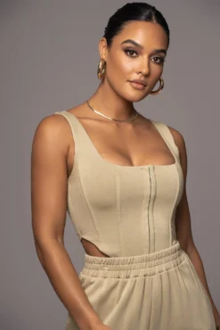 Sultry and versatile in our Moss More Than Friends Corset! Designed of brushed fleece, this stunning corset style top features a hook and eye design with tank shoulder straps and a round neckline. Boning throughout the bodice adds structure for a secure fit. Pair with our