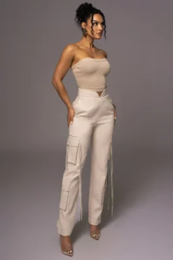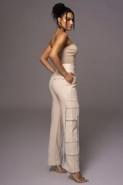 Add a modern twist to your usual cargos with our Natural Better Half Linen Utility Pants. Crafted from a lightweight linen fabric, these unique cargo pants showcase a front slit waistband with functional cargo pockets and adjustable drawstrings attached to the top pockets. Complete with lined interior and a hidden side zipper closure. Pair with our