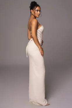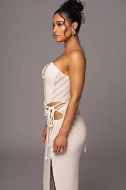 Explore a new kind of linen with our Natural Destination Linen Skirt Set! This captivating skirt set features a strapless corset with boning for structure and a stunning lace-up back with rope tie closures. The matching skirt stuns in a maxi hem with a rope tie waist and a side cutout. Crafted of our highest linen blend for premium quality and fit. No stretch. Sold as set.