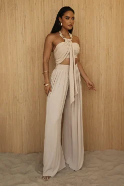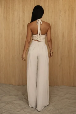 Introducing the new Natural Take A Seat Halter Top! A must have summer staple that takes your look from day to night effortlessly. This vacation ready halter top offers eye-catching detail with a tortoiseshell embellished neckline and stunning front drape design. Crafted in a soft and breathable fabric for fresh comfort. Pair with our