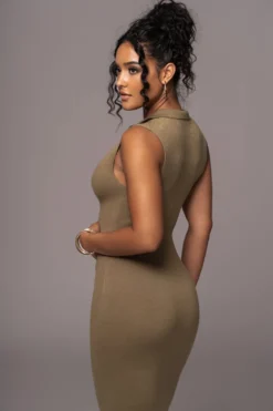 Step out in the captivating allure of our Olive Never Better Midi Dress, perfect for the summer season. This versatile dress features a v neckline and a flattering silhouette that hugs your curves. Crafted with a soft knit, this transitional staple ensures comfort and style throughout the seasons. Single lined. Stretchy.