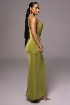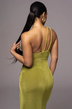 Turn heads in our stylish Olive Scarlet One Shoulder Maxi Dress! Highlighting a sleek one shoulder neckline, this stunning occasion dress details an eye-catching thigh slit with a cutout waist, back zipper closure, and maxi length hem. Crafted in a luxe slinky fabric for premium quality and comfort. Double lined. Stretchy.