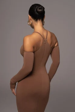 The Pecan Soledad Cross Maxi Dress blends edge with femininity in this desirable skin-tight maxi dress featuring a beautifully braided criss-cross neckline with removable off-the-shoulder sleeves and chest cutouts. Designed in our double-lined fabrication achieving an effortlessly sculpted fit with ultimate appeal. Hidden back zipper closure. Stretchy,