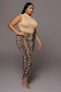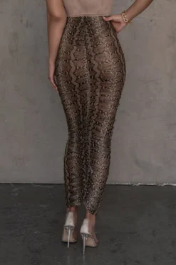 EXCLUSIVELY DESIGNED BY US FOR YOU! Live on the wild side all summer long. Stretchy, lightweight, ruched midi skirt features sheer mesh throughout, a solid waistband, and no closures. Perfect to pair with your swim or for a bold and sexy look pair with a bodysuit!