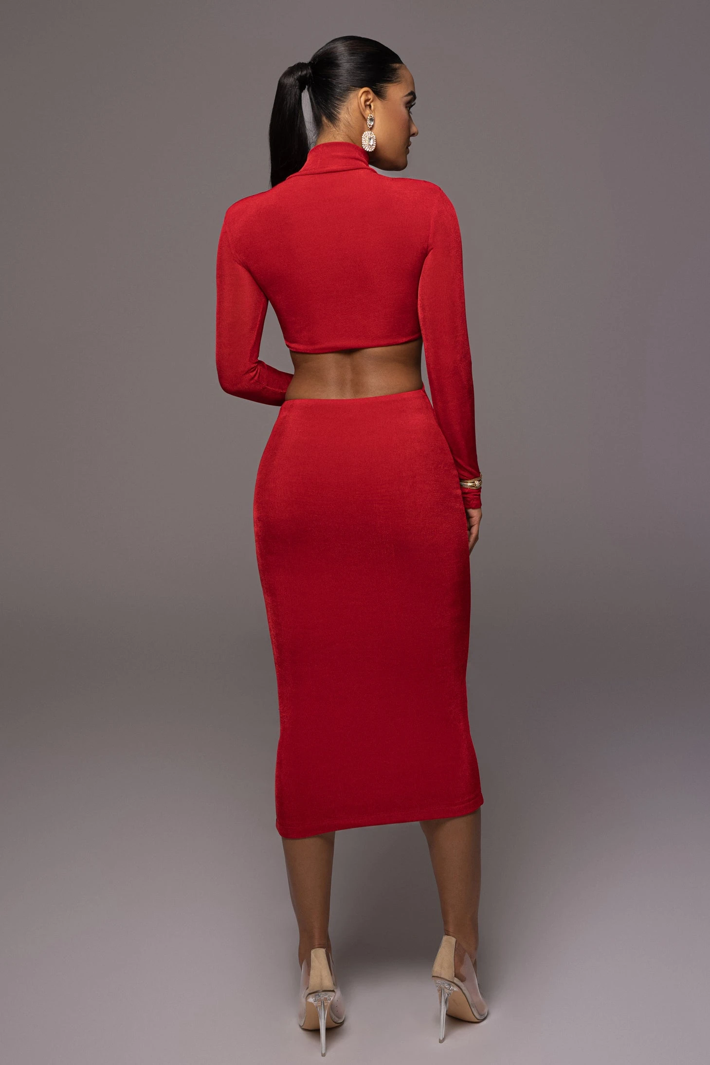 Achieve effortless style with sleek elegance in theย Tango Red Made For You Dress. This classic mock neck dress has been luxuriously reimagined in a soft slinky fabric featuring long sleeve arms with a bold cutout back to accentuate your waist. Padded shoulders add a sophisticated finish. Stretchy. Double lined.